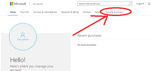 You will get into a Hotmail account setup page with many options. There will be a list of the tab with the name of "Home" to "your info" etc in the last tab in the list along there, "security and privacy" on it.