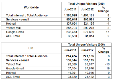 The move is the latest effort by Microsoft to combat the rise of Gmail. Hotmail has long been the largest webmail service in the world, but Google's email service has been climbing quickly. According to comScore Networks worldwide market share of Hotmail fell 4 percent in the last year, slipped to 324 million users in June, while Gmail increased 17 percent to 278 million users in the same time period, .